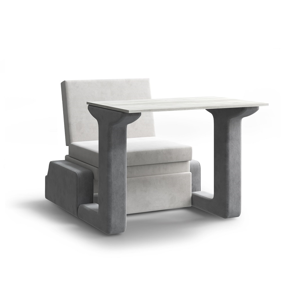 Компактный односпальный диван для детской комнаты. Выполнен из высококлассных безопасных материалов в трендовых оттенках. Особенности: ШВГ в собранном виде, см: 100х95х83, посадочное место 75х50х65 ШВГ спального места, см: 100х88х220, место для лежания 75х40х192 ШВГ стола с сиденьем, см: 100х95х163, посадочное место 75х50х65, стол 100х83х70 каркас из ДСП 16 мм, ДВП 4 мм, ЛДСП 16 мм, фанеры наполнение – ППУ разных толщин средней жесткости основа спального места – латофлексы с латодержателями опора – мебельная, черного цвета 25 мм столешница ЛДСП 16 мм толщина ППУ сиденье 40 мм максимальная нагрузка на спальное место - 70 кг