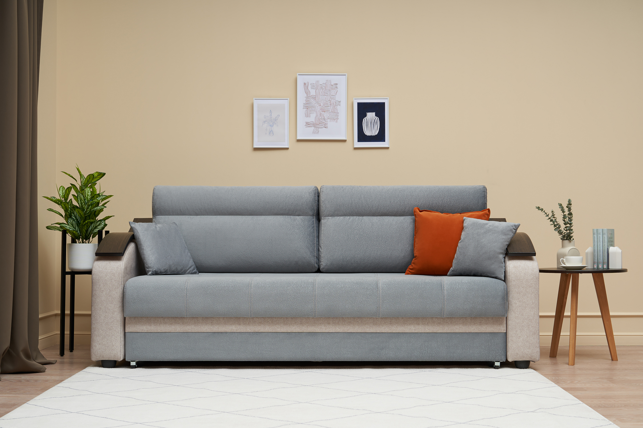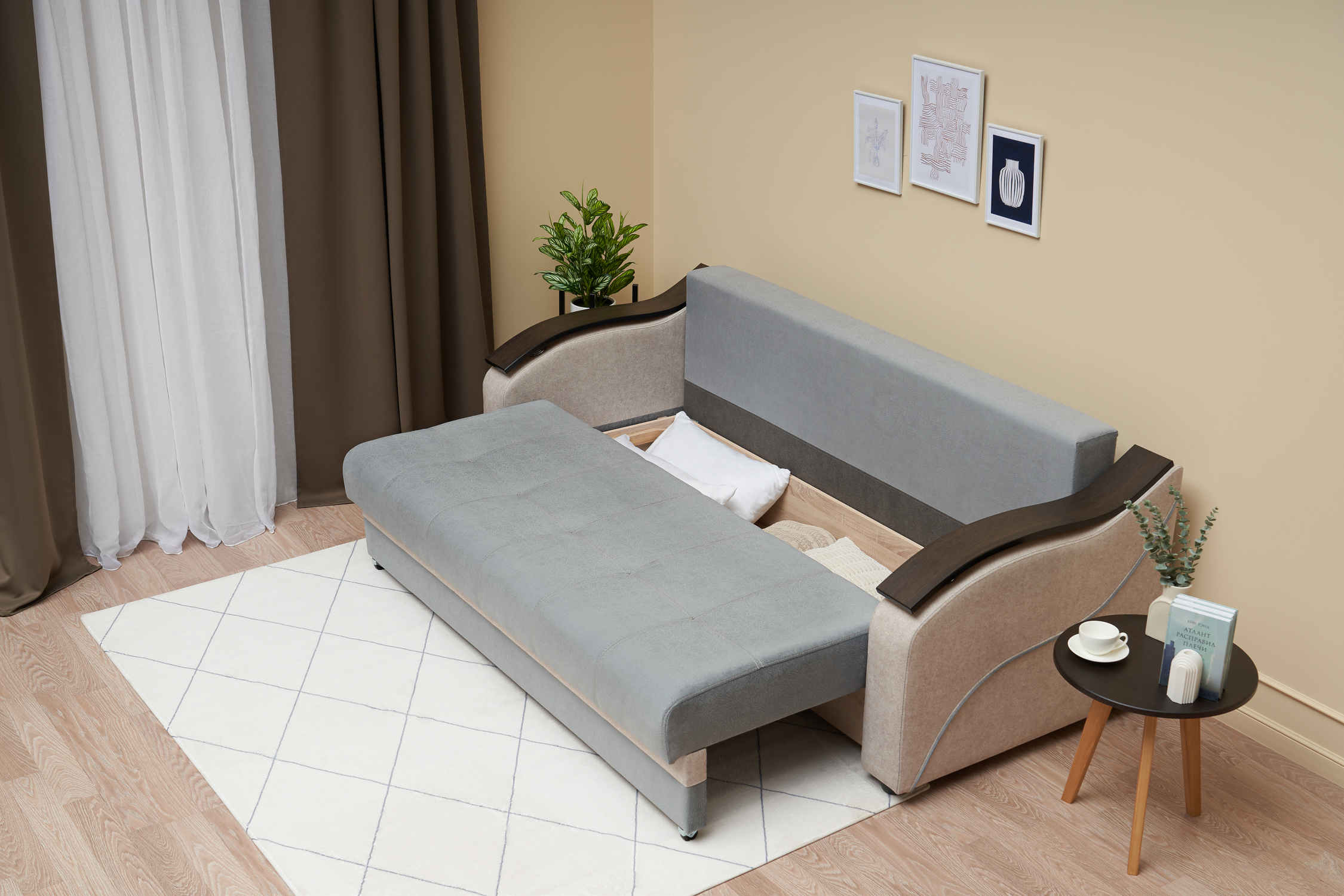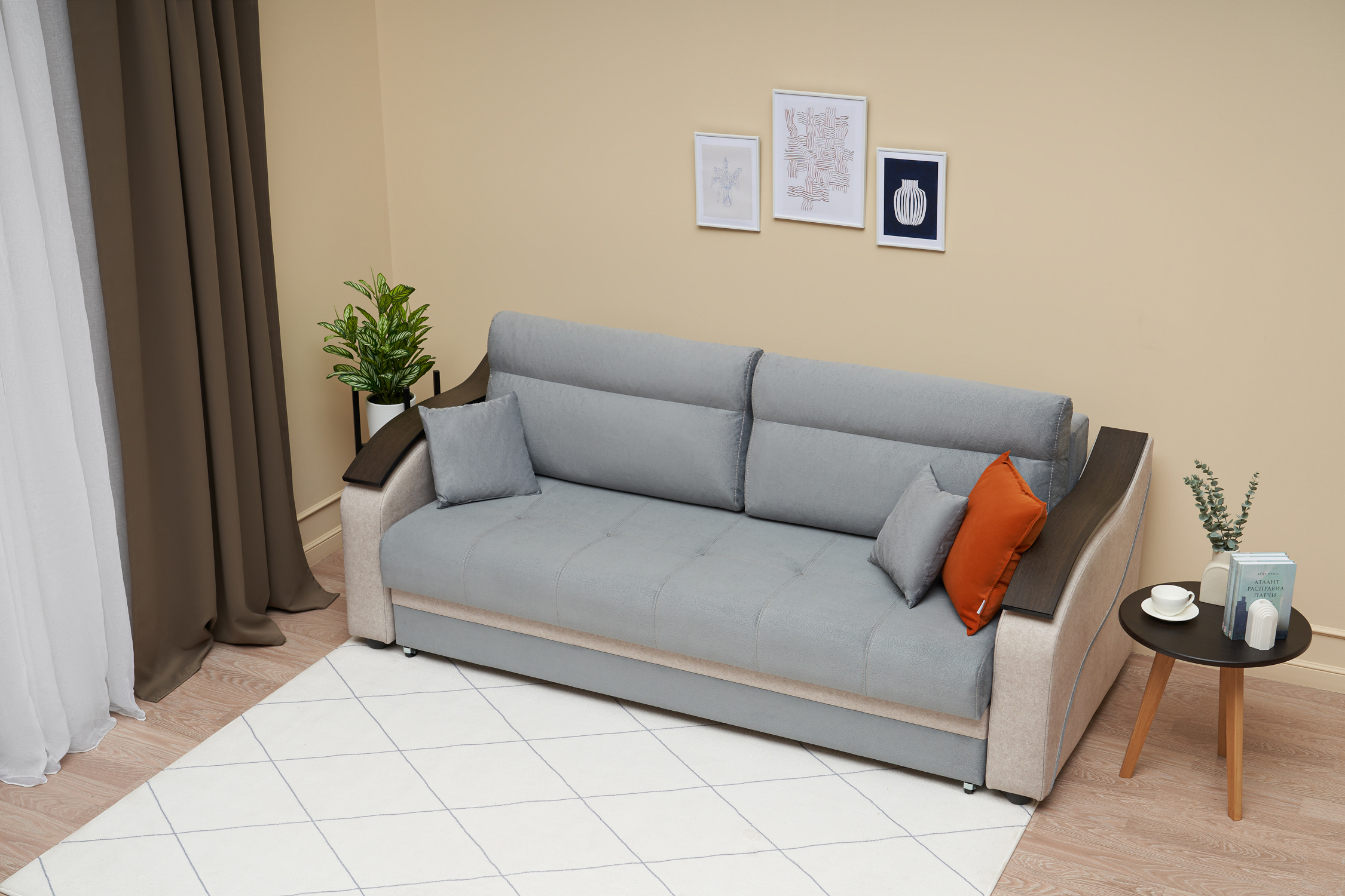 —Диван еврокнижка Милан серый / бежевый