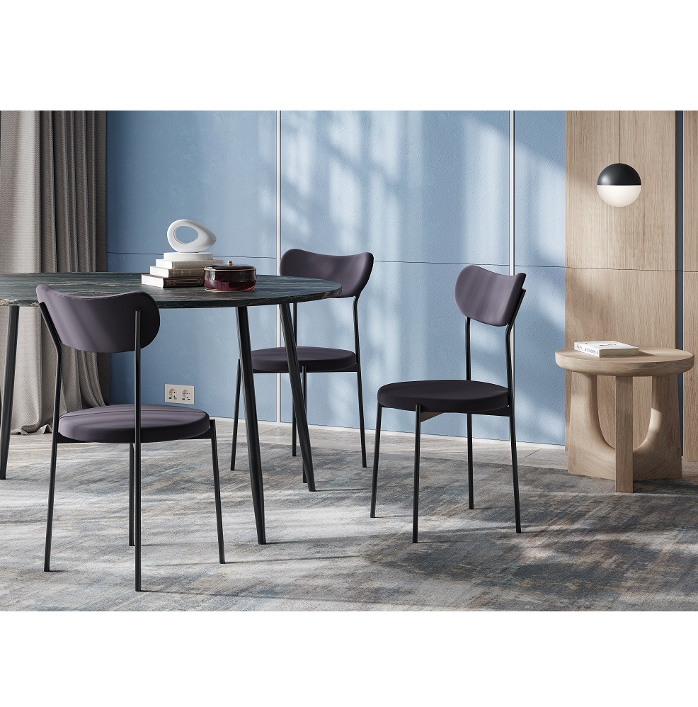 Удобный кухонный стиль в современном стиле. Округлая сидушка и спинка правильной формы обиты прочным и приятным на ощупь велюром графитового цвета. В комплекте 2 стула.
