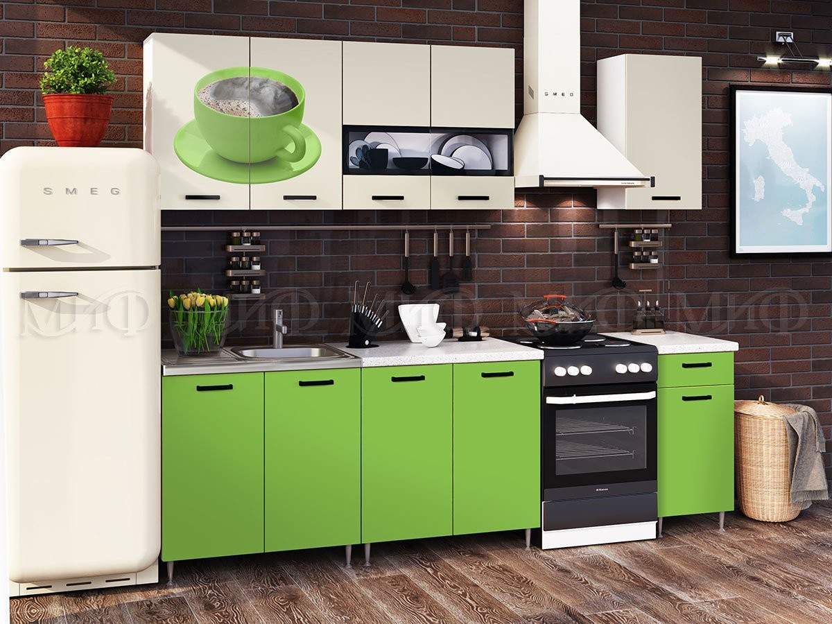 Кухонный Гарнитур Риана-2 NEW/Мороженое Бежевый+Олива Фотопечать ЛДСП 2000 мм