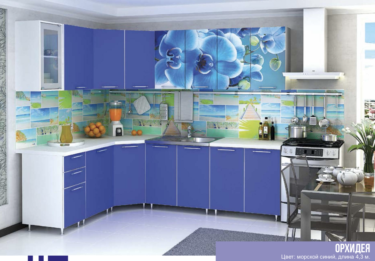 —Кухонный Гарнитур Орхидея Синяя Угловая 4300 мм