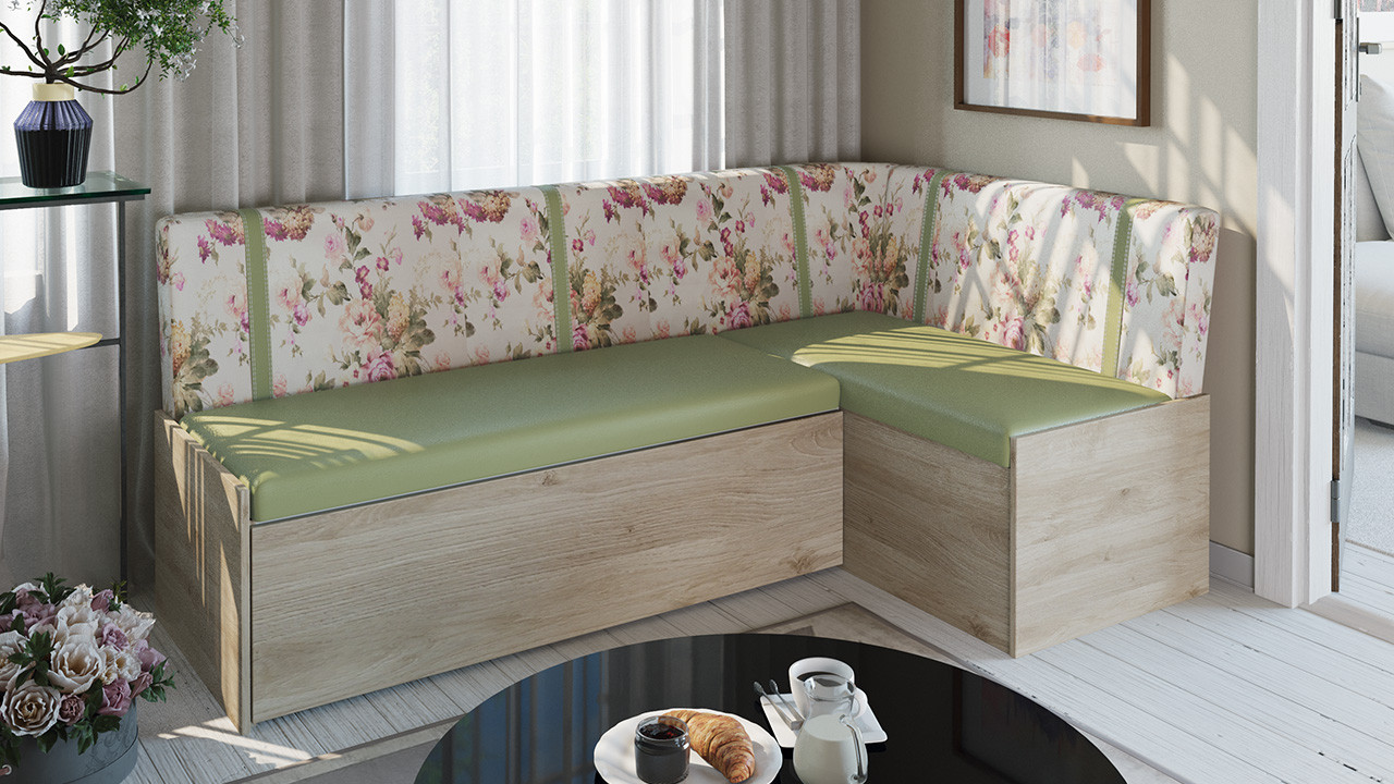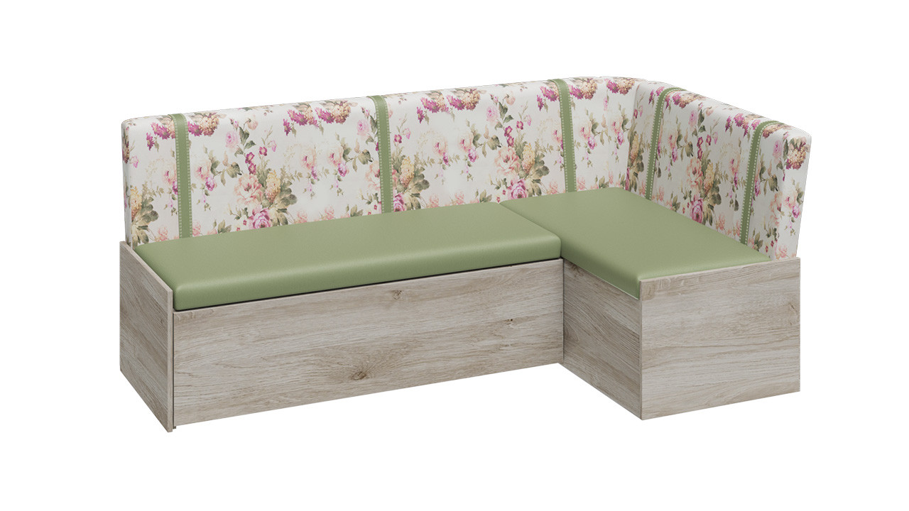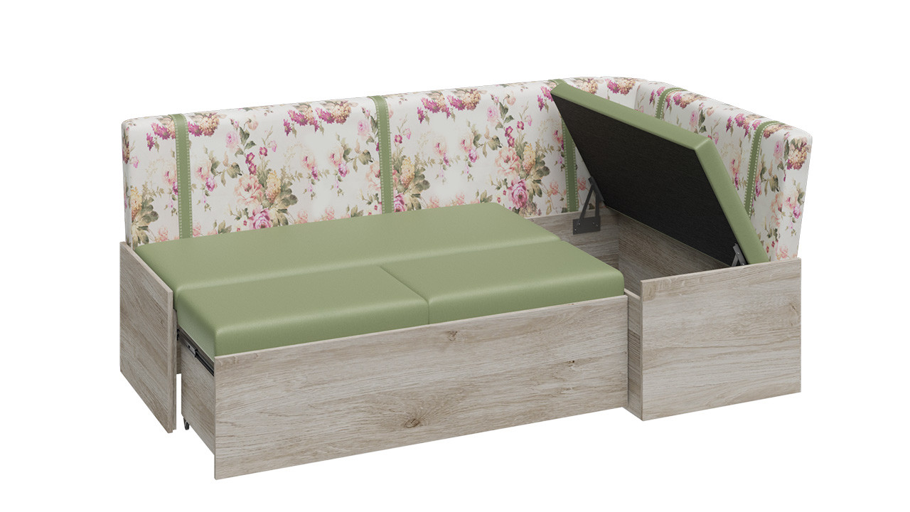 Скамья угловая со спальным местом «Париж» (Баттл Рок/ Цветы зелёные)