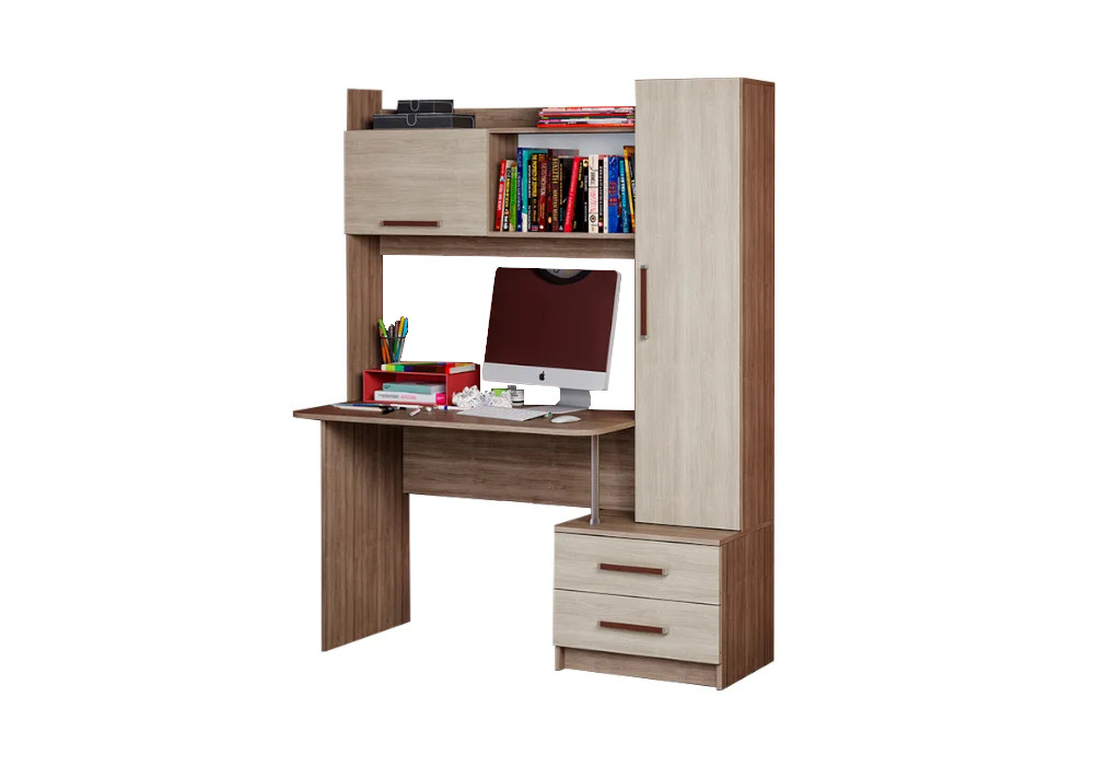Рабочий стол (ШхГхВ): 110 х 58.6 х 76 см.; Закрытый пенал (ШхГхВ): 35 х 28.5 х 135.6 см.; Тумба с двумя выдвижными ящиками (ШхГхВ): 54.8 х 48 х 44.2 см. |